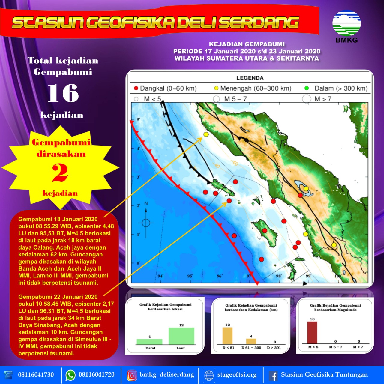 Ragam BANDA ACEH DIGUNCANG GEMPABUMI TEKTONIK OLEH STASIUN GEOFISIKA DELI SERDANG (BMKG) January 24, 2020 • Dalam sepekan, hasil rekaman Peralatan SeiscomP3 Stasiun Geofisika Deli Serdang (BMKG) tanggal 17 Januari 2020...