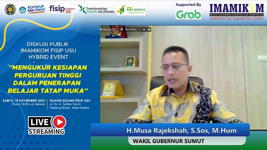 Pendidikan Hadiri Diskusi Publik IMAMIKOM USU, Wagubsu: Perguruan Tinggi Harus Siap Dari Segi Pedoman dan Sarana Prasarana November 14, 2021 • Medan – Wakil Gubernur Sumatera Utara, H. Musa Rajekshah, S.Sos, M.Hum menegaskan kepada perguruan tinggi...