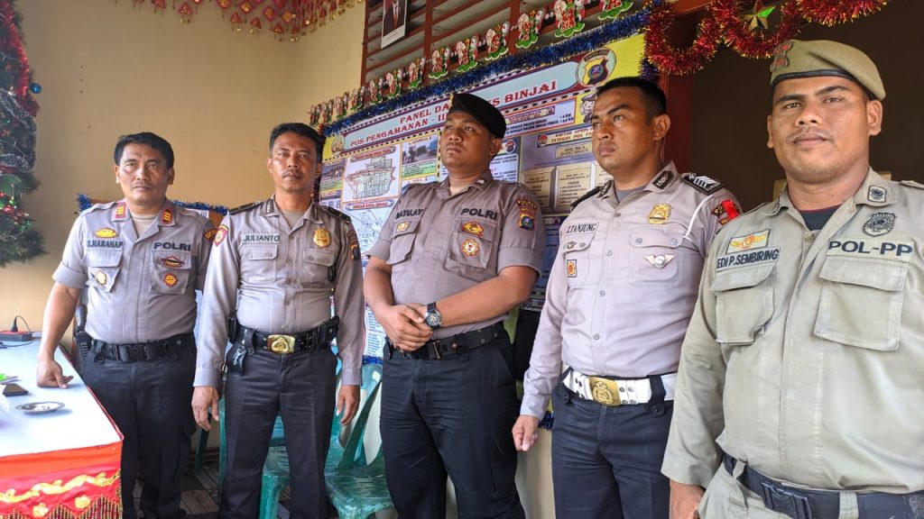 BINJAI – Jelang Natal 2019 dan Tahun baru 2020, Polisi Sektor (Polsek) Binjai Timur menggelar Pos Pengamanan (Pospam) di simp. Megawati Jl. Soekarno Hatta, Kec. Binjai Timur, Senin (23/12/2019).