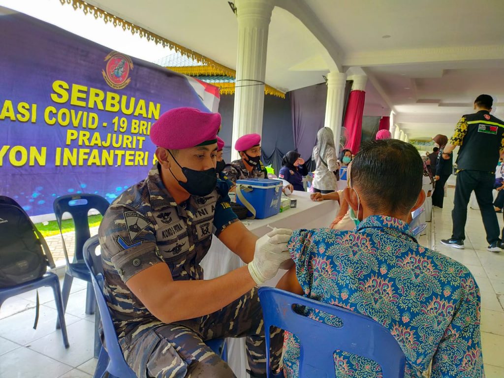 Home » Bersinergi Dengan Polres Langkat, Yonif 8 Marinir Laksanakan Vaksinasi Serentak