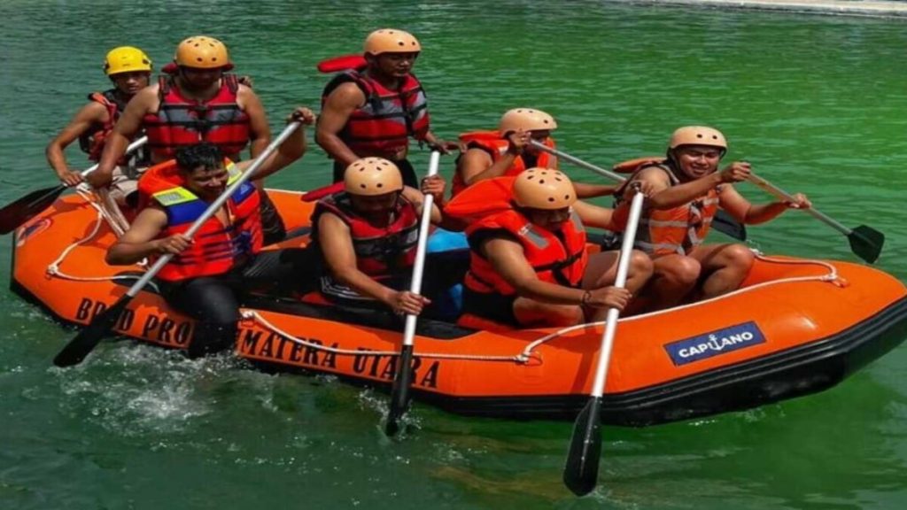 BRI Cabang Medan Sisingamangaraja Menggelar Simulasi Tanggap Bencana Menggunakan Perahu Karet di Kolam Renang Paradiso, Jalan Sisingamangaraja Medan. (Foto: Bnews.Id/Istimewa)