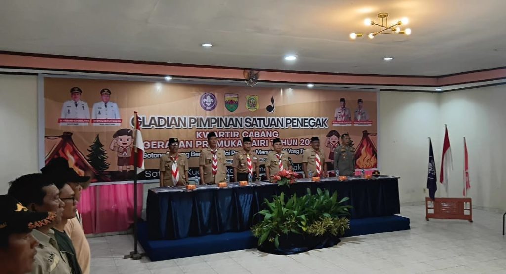 BNEWS.ID, Sidikalang – Dandim 0206/Dairi, Letkol Czi Nanang Sujarwanto, S.E menghadiri kegiatan Gladian Pimpinan Satuan Penegak Kwartir Cabang Gerakan Pramuka Kabupaten Dairi Tahun 2025 yang digelar di Ballroom hotel Baristra, Jalan Sidikalang-Medan, Sitinjo II, Kecamatan Sitinjo, Kabupaten Dairi, Jumat (29/8/2025) sore. Kegiatan ini mengusung tema “Gotong Royong Berbasis Nilai Pramuka Menuju Dairi yang Tangguh” dengan diikuti 65 peserta Pramuka dari berbagai sekolah dan gugus depan.