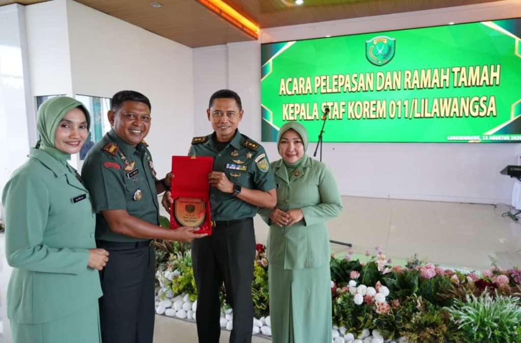 Komandan Korem (Danrem) 011/Lilawangsa, Kolonel Inf Ali Imran menyampaikan terima kasih dan penghargaan setinggi-tingginya atas loyalitas dan dedikasi kinerja selama mendampinginya menjadi Kepala Staf.