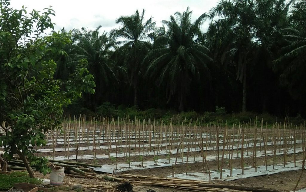 Terlihat sekitar 1/4 Hektar sudah ditanami jenis cabai dan mulai tumbuh subur dengan tanah ditutup pelastik dan pancang penyanggah dari belahan bambu.