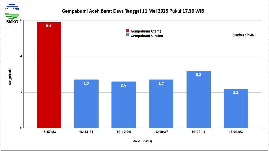 BNEWS.ID, Aceh – Guncangan gempa bumi tektonik menggoyang wilayah pesisir selatan Aceh Barat Daya, minggu (11/05/2025) pukul 15.57 WIB. Berdasarkan data sementara dari Berdasarkan analisis Badan Meteorologi, Klimatologi, dan Geofisika (BMKG) I Medan gempa tersebut mengalami pembaruan parameter dengan kekuatan magnitudo 5,9, setelah sebelumnya sempat tercatat M6,2.