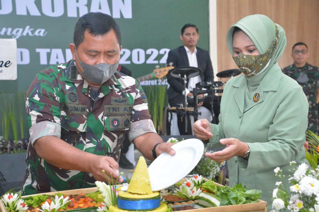 Setelah memberikan sambutan, dilanjutkan Kabekangdam melakukan pemotongan tumpeng ulang tahun Bekangad, kemudian diberikan kepada Personel Bekangdam I/BB yang termuda an Muh.Iksan(19 thn)