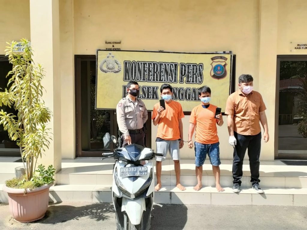 ” Sesuai LP / B / 415 / X / SPKT Polsek Sunggal, kedua pelaku ditahan di Polsek Sunggal serta barang bukti diamankan Sepeda Motor Honda Vario warna putih BK 6393 AHD”, ungkapnya.