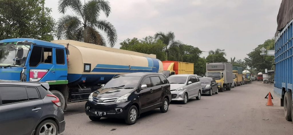 Terjadi kemacetan lalulintas di jalur Pintu keluar Tol Binjai menuju Stabat Selasa Siang, 09 Juli 2019. Foto / Ahmadi