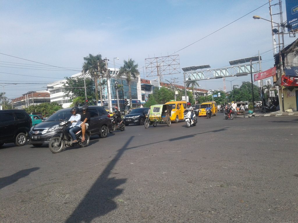 Tampak lalulintas ramai lancar dipersimpangan pasar sei sekambing Jl. Gatot Subroto Medan, Rabu Pagi, 17 Juli 2019, pukul 08:45. Foto / Dodi Kurniawan