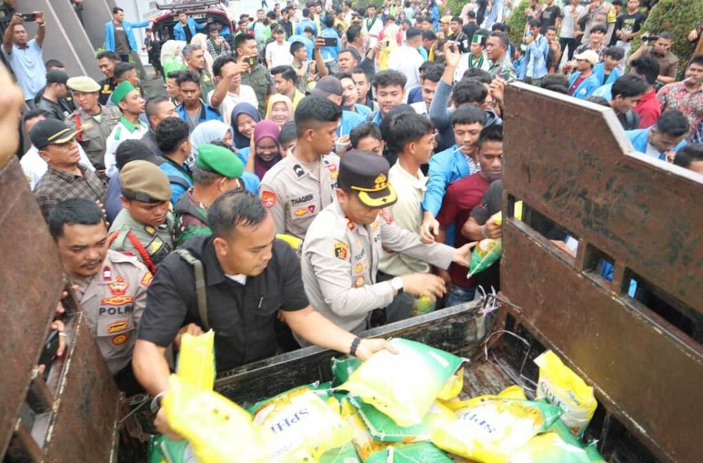 Sebanyak 420 sak beras SPHP ukuran 5 kilogram diserahkan kepada mahasiswa peserta aksi. Bantuan tersebut, menurut Kapolres, merupakan bentuk dukungan moral sekaligus perhatian terhadap mahasiswa yang telah menyampaikan aspirasi dengan cara-cara damai dan beradab.