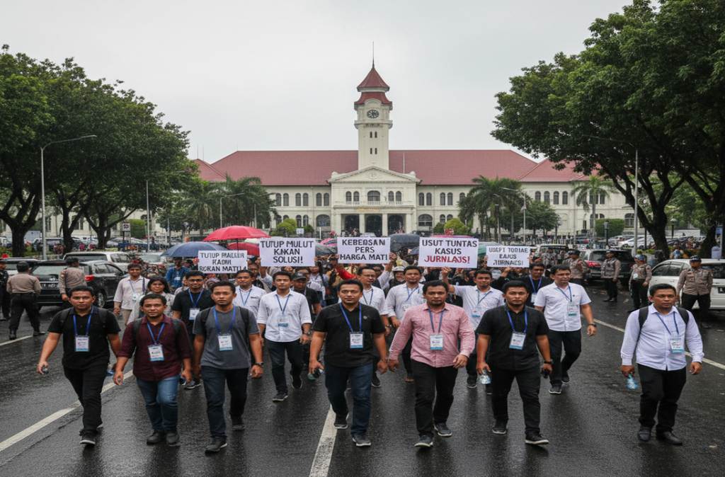 Foto : Ilustrasi AI, Puluhan Jurnalis Unjuk Rasa
