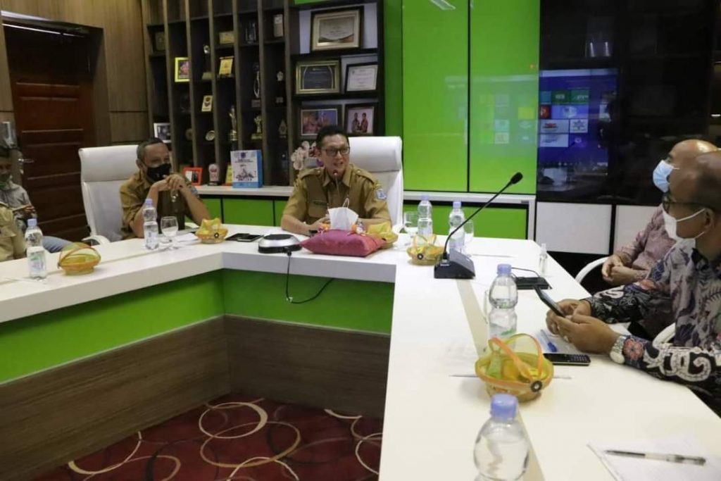 Staf Ahli Pemko Binjai, Drs. Afwan. Apt. MM didampingi Asisten III Pemko Binjai Drs. Meidy Yusri menerima Kunjungan kerja Pemerintah Kabupaten Nias Barat bertempat di Ruang Binjai Command Center (BCC), Senin (01/02/2021).