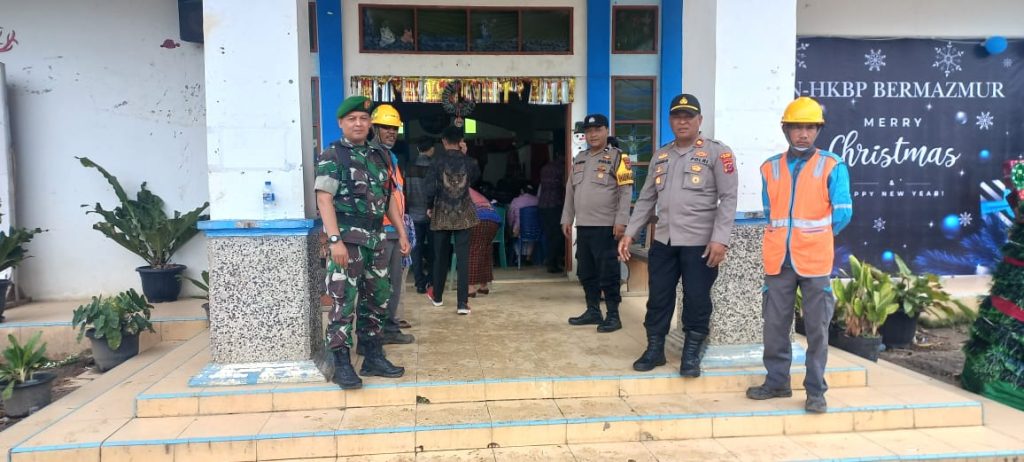 BNEWS.ID, Dairi – Pengamanan terpadu TNI–Polri mewarnai pelaksanaan ibadah Tahun Baru 2026 umat Kristiani di Gereja HKBP Resort Parongil, Kecamatan Silima Pungga-Pungga, Kabupaten Dairi, Kamis (01/01/2026). Kegiatan pengamanan dan monitoring tersebut dilaksanakan oleh Babinsa Koramil 03/Parongil Kodim 0206/Dairi, Serka Supriyadi dan Sertu A. Latif, bersama Bhabinkamtibmas Polsek Parongil guna memastikan jalannya ibadah berlangsung aman, tertib, dan penuh khidmat.