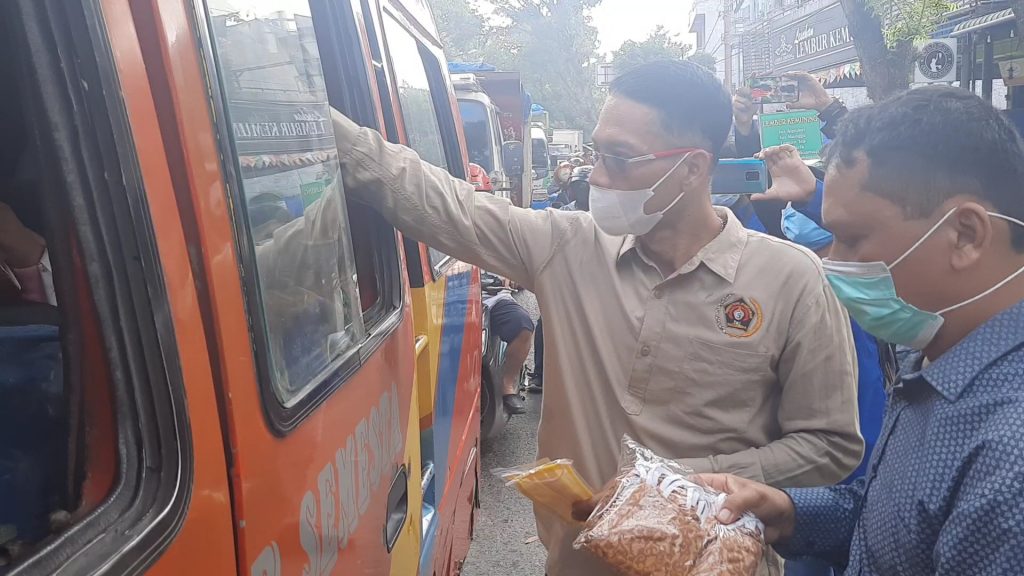 Ikut andil dalam memerangi COVID 19, Persatuan Wartawan Indonesia (PWI)  kab.  langkat membagikan 1.500 masker kepada pengguna jalan ( 08/02) yang dilaksanakan di jalan Sudirman kecamatan Stabat Langkat.