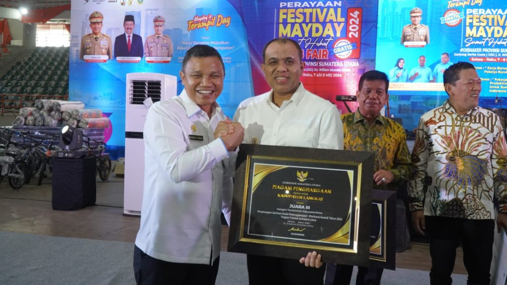 Kabupaten Langkat mendapatkan Piagam penghargaan juara III Kategori Pemerintah Kabupaten/Kota Penghargaan Jaminan Sosial Ketenagakerjaan (Paritrana Award) Tahun 2024 Tingkat Provinsi Sumatera Utara.