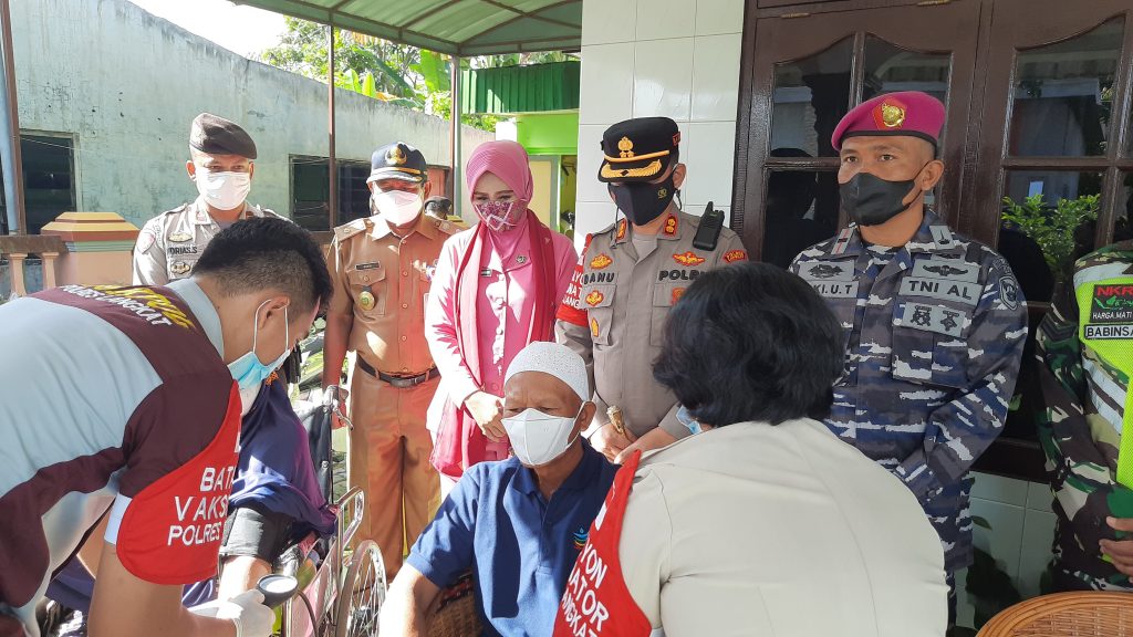 Kejar capaian target vaksinasi khususnya di kab. Langkat sebanyak 80 %, Polres Langkat bekerja sama dengan Batalyon infantri 8 marinir Tangkahan lagan dan Kodim 0203 Langkat, hari ini Selasa (26/102021) mensiasati vaksinasi dengan cara mendatangi rumah warga satu persatu, khususnya warga lansia.