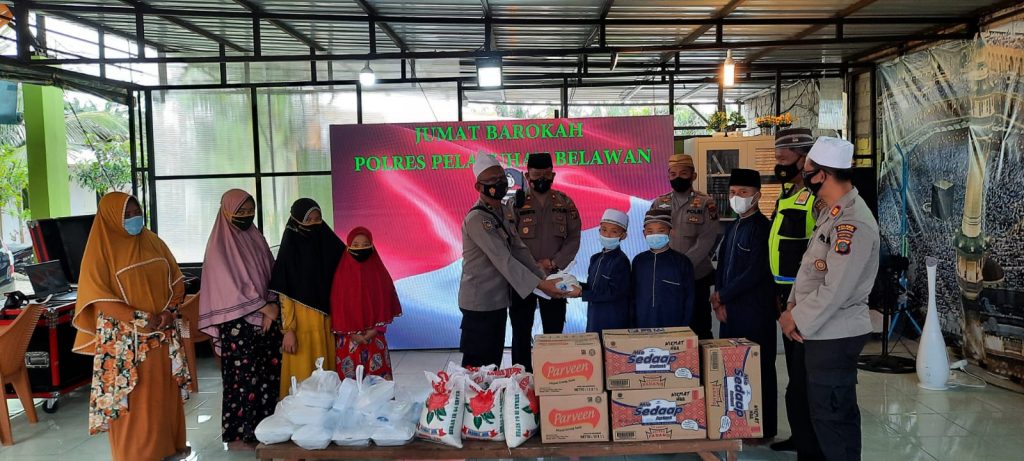 Dalam kesempatanya pada Jumat barokah ini, Polres Pelabuhan Belawan memberikan bantuan sembako kepada Rumah Tahfidz Asy Syairun di Desa Klambir V, Kec. Hamparan Perak, Deli Serdang, Jumat, 29 Oktober 2021.