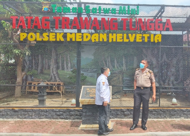 Ketua Pokdarkamtibmas Bhayangkara Resor Medan, Eric (kiri) dan Wakapolsek Medan Helvetia, AKP AT Simangunsong (kanan).