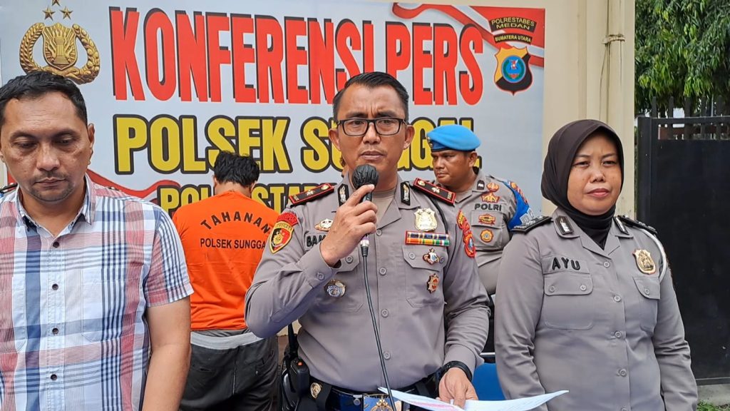 “ Berdasarkan laporan korban Bernama Muliani Ghozali dan rekaman CCTV, Unit Reskrim Polsek Sunggal berhasil menangkap pelaku dan barang bukti sepeda motor hasil curiannya dengan nomor polisi BK 3508 AGQ. Terhadap pelaku terpaksa kita tembak dikarenakan berusaha melawan petugas saat diamankan,” uangkap Kapolsek Medan Sunggal, Kompol Bambang G Hutabarat, SH, MH, saat konferensi pers di Mako Polsek Sunggal.