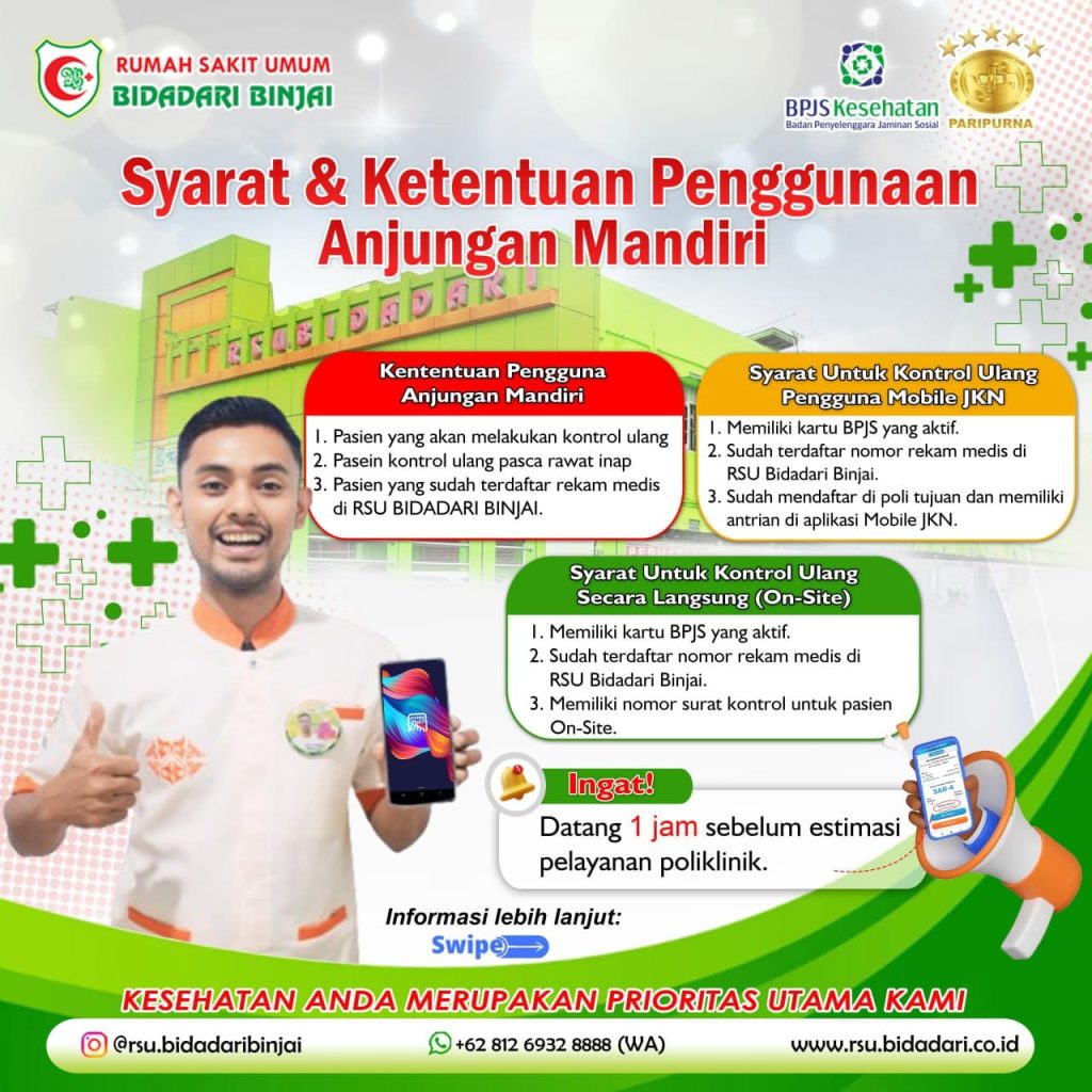 Menurut Direktur RSU Bidadari Binjai, Dr Esti Aditya Dewi mengatakan bahwa sejak awal bulan Juni 2024, pihak rumah sakit sudah menyiapkan mesin Anjungan Mandiri yang bertujuan untuk memudahkan pasien dalam hal mengambil antrian saat akan memeriksa kesehatannya di setiap poli yang ada dirumah sakit.