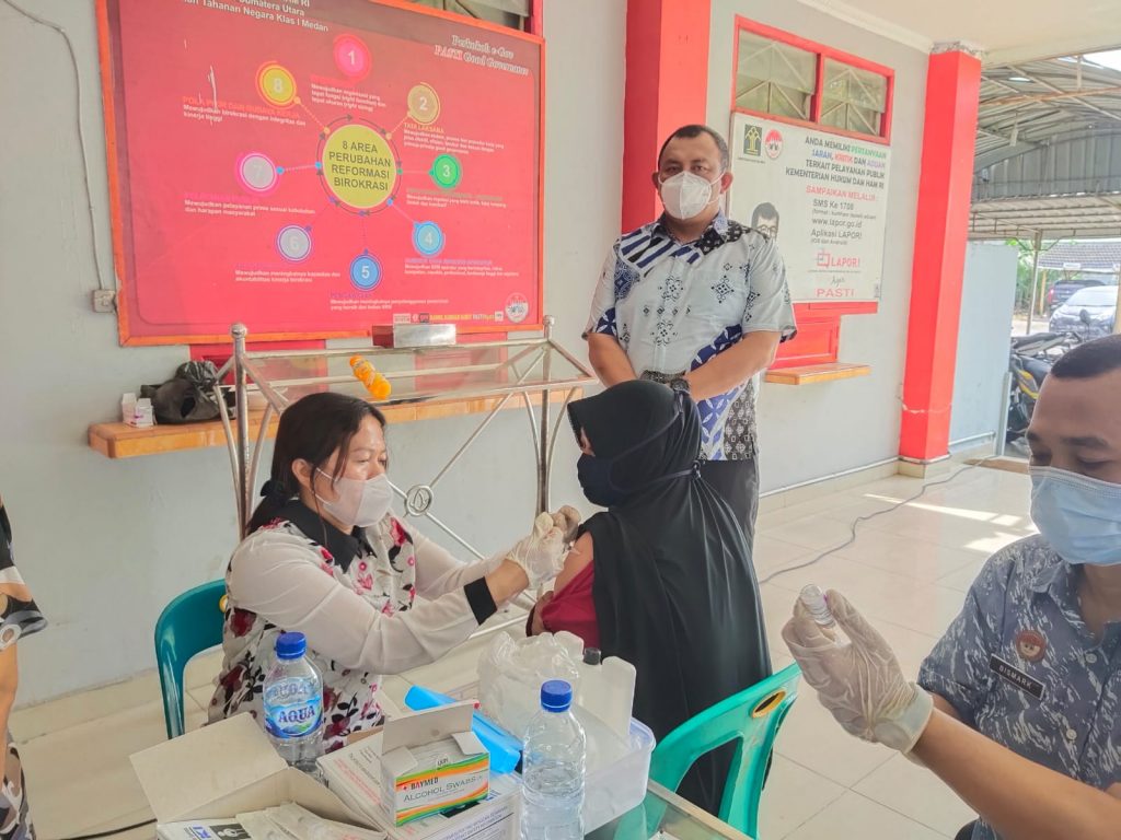 Kegiatan vaksin ini merupakan bentuk Kerjasama Rutan 1 Medan dengan polsek Medan Helvetia.