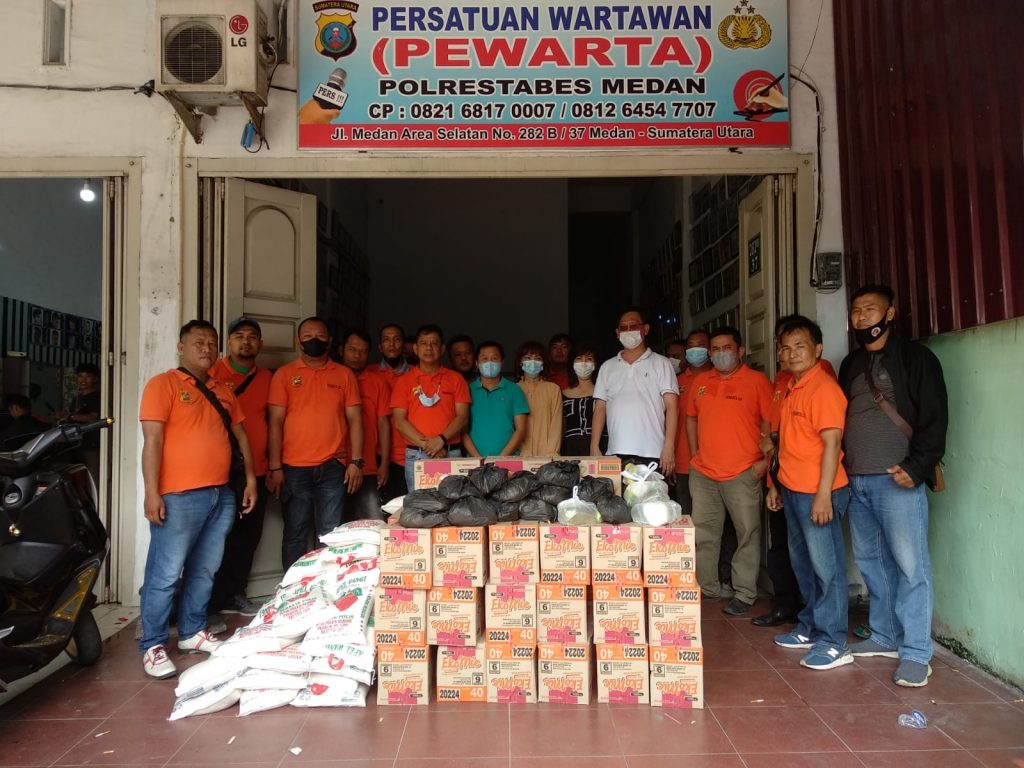 Pemred Media Online Pewarta.co ini menyampaikan, bahwa pembagian sembako ini diperuntukkan untuk jurnalis atau wartawan yang tergabung di Pewarta Polrestabes Medan.