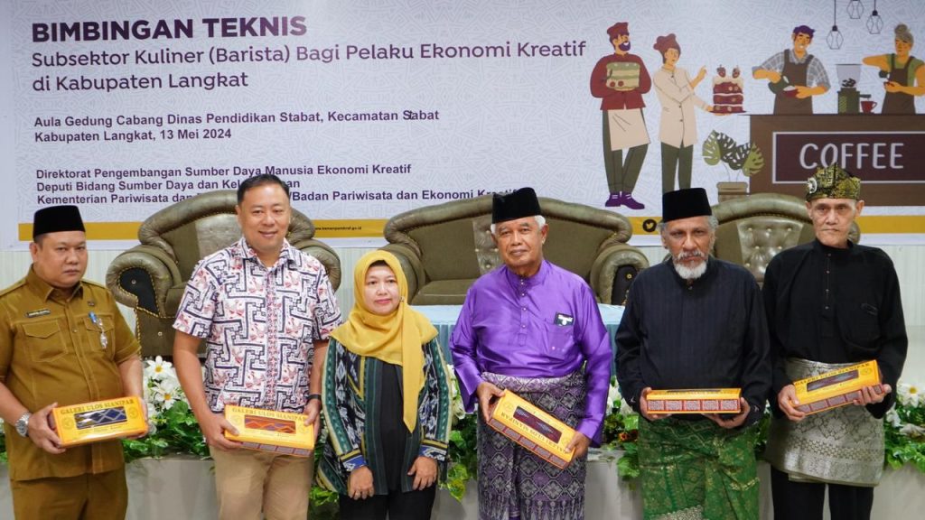 Mewakili PJ. Bupati Langkat H. M. Faisal Hasrimy, AP., M.AP hadir dalam kegiatan acara Bimbingan Teknis Subsektor Kuliner (Barista) Bagi Pelaku Ekonomi Kreatif di Kabupaten Langkat, Senin (13/05/2024) pagi.