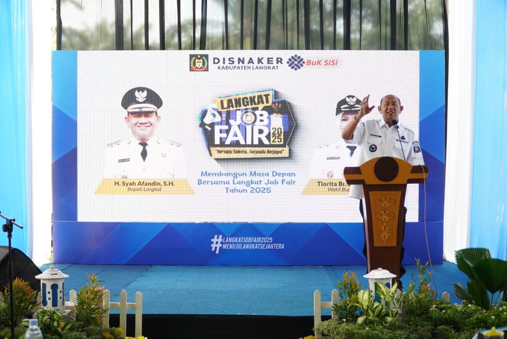 Dalam sambutannya, Bupati H. Syah Afandin, SH menyampaikan apresiasi kepada seluruh pihak yang telah mendukung terselenggaranya Job Fair. Menurutnya, kegiatan ini merupakan wujud nyata komitmen Pemkab Langkat dalam menyediakan peluang kerja bagi masyarakat.
