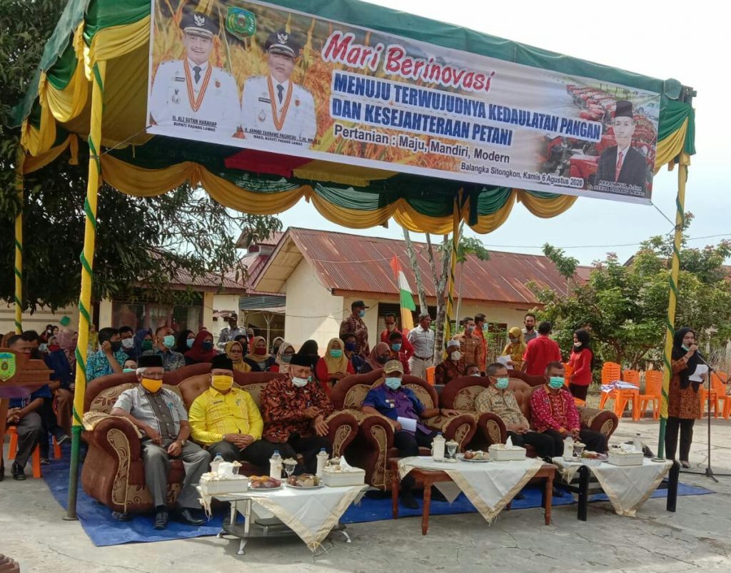 Bupati Padang Lawas melalui wakil Bupati Padang Lawas menghadiri panen padi perdana di Kantor Dinas Pertanian Padang Lawas Sumut, 6 Agustus 2020, pukul 09:00 Wib.