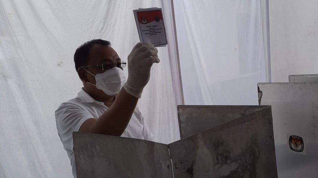 Binjai – Bnews.id : Pilkada serentak hari ini dilaksanakan di sejumlah daerah di tanah air. Walikota Binjai, Muhammad Idaham, didampingi istri dan dua putranya (9/12) menggunakan hak suaranya di tps 1 kelurahan Satria kota Binjai dan datang sekitar pukul 10.30 WIB.
