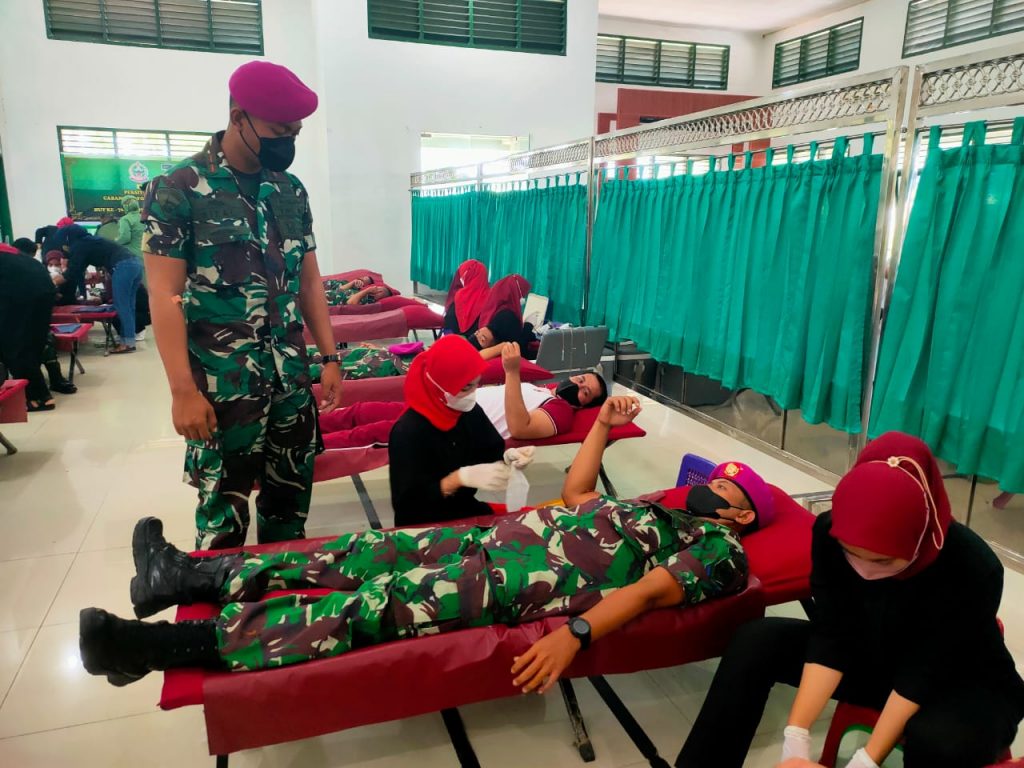 Binjai – Bnews.id: Prajurit Yonif 8 Marinir Pangkalan Berandan yang dipimpin oleh Lettu Marinir Chalvin Sahusilawane turut hadir mengikuti kegiatan Donor darah Dalam rangka menyambut HUT ke-76 Persit Kartika Chandra Kirana tahun 2022, kegiatan Donor Darah bertempat di gedung aula Sahlan Siregar Yonif Raider 100/PS Binjai, Selasa (29/03/2022).